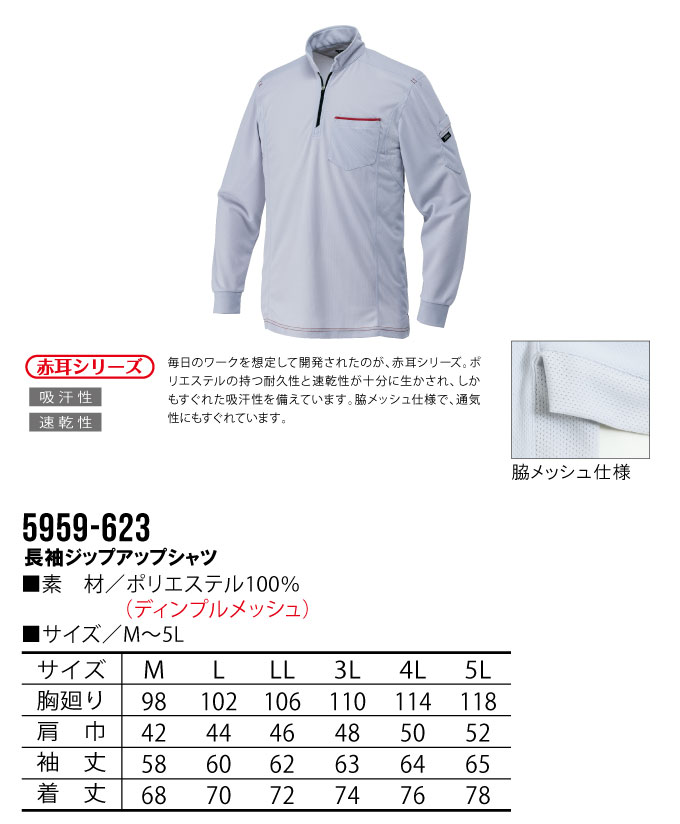 ■素材:ポリエステル100%(ディンプルメッシュ) ■サイズ M:胸回り98cm 肩巾42cm 袖丈58cm 着丈68cm L:胸回り102cm 肩巾44cm 袖丈60cm 着丈70cm LL:胸回り106cm 肩巾46cm 袖丈62cm 着丈72cm 3L:胸回り110cm 肩巾48cm 袖丈63cm 着丈74cm 4L:胸回り114cm 肩巾50cm 袖丈64cm 着丈76cm 5L:胸回り118cm 肩巾52cm 袖丈65cm 着丈78cmcellpadding="1"> 5959シリーズ 長袖ポロシャツ クルーネックシャツ 半袖Tシャツ 半袖ポロシャツ 長袖ジップアップシャツ 鯉口シャツ キーネックシャツ