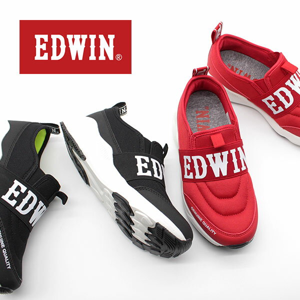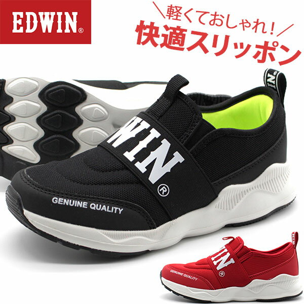 スニーカー キッズ 子供 靴 スリッポン 黒 赤 ブラック レッド 軽量 サイドゴア ロゴ エドウィン EDWIN EDW-3564