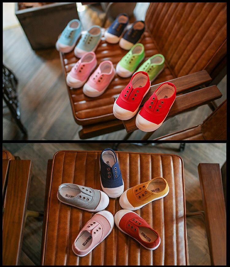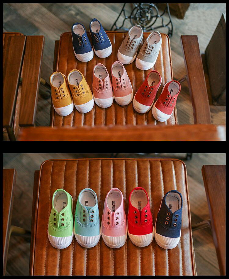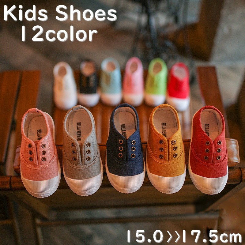 子供シューズ スリッポン キャンバスシューズ 女の子 男の子 紐付き 無地 キッズシューズ 履きやすい 滑りにくい 快適 通気 軽量 通学 通園 可愛い 新作